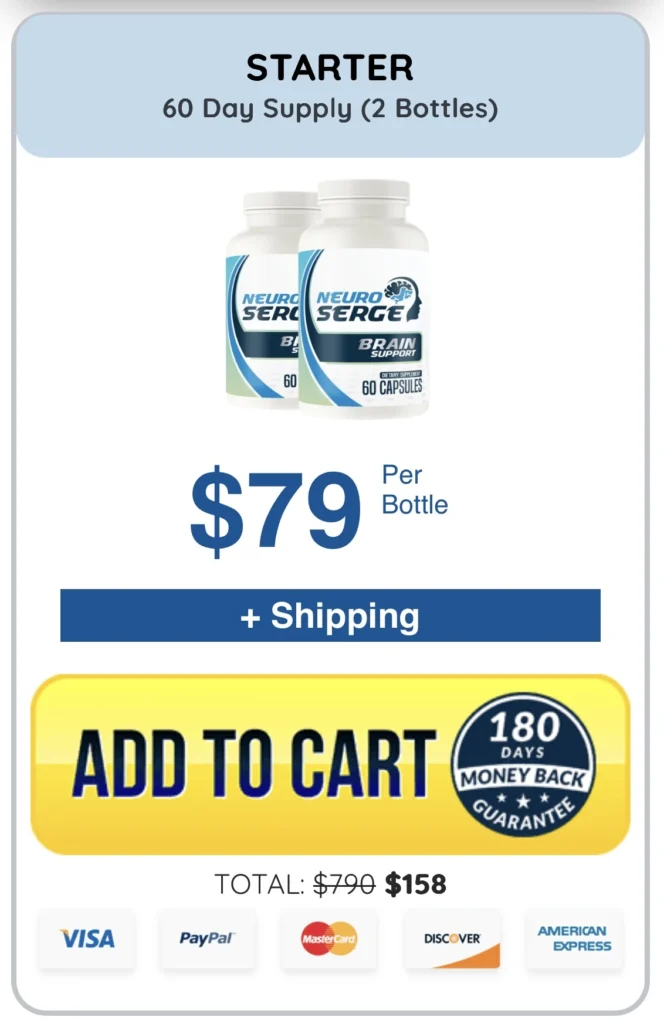 We’re so confident you’ll achieve incredible results that we back Neuro Serge with a 100% satisfaction guarantee for 180 days. Start using it as soon as it arrives, and within days, you may notice less brain fog, a clearer mind, and more steady energy. As you continue your journey, you could start to see gradual improvements in focus, memory, and overall cognitive performance, making it the perfect time to track your progress. If after several weeks or even months you’re not completely satisfied, we’ll refund your money in full. With Neuro Serge, you’re truly in control of your brain health journey.